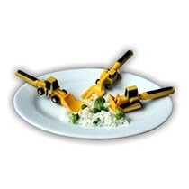 Constructive Eating's Fork Lift Fork Bull Dozer Pusher and Front Loader Spoon are designed with function and play value in mind. Textured easy grip handles and detailing allow little hands to hold on tight. Even the youngest child will animate our construction machines with their true to life color scale and shape. Our utensils can be used for every meal; each is rugged light weight and dishwasher safe. They are great when going out to eat trying to extend productive eating time at the table encouraging those not-so-favorite foods or just for fun! Our utensils are made with FDA approved materials contain no lead are BPA free PVC free and phthalate free and are fully CPSIA compliant.